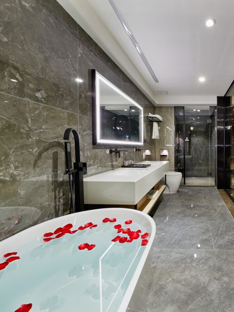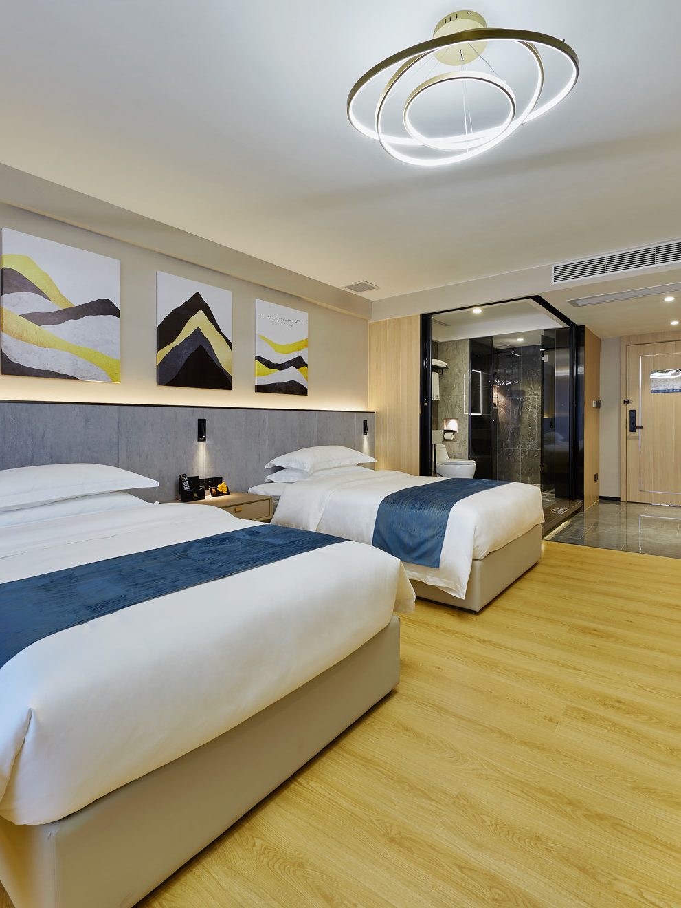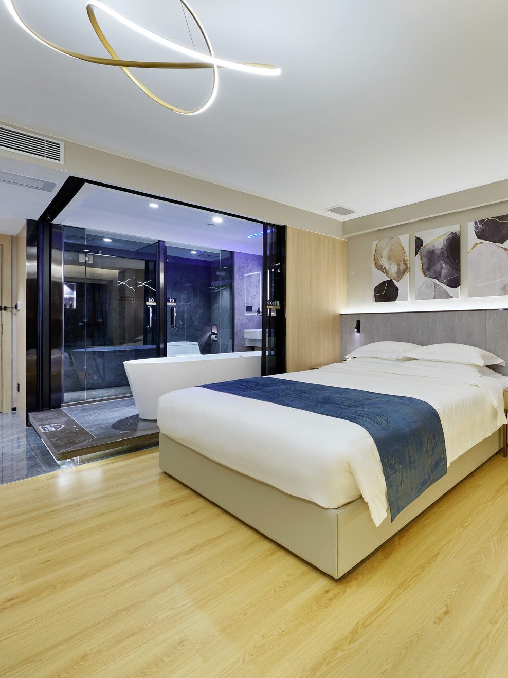卧室都享有壮丽的景色和现代内饰。 在我们舒适的床上放松,在我们时尚的浴室里尽情享受,享受我们现代简约式的酒店服务。